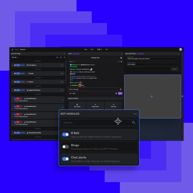 Easily access StreamElements controls like pausing/muting alerts or snoozing ads to make real-time adjustments on the fly, with more coming soon.